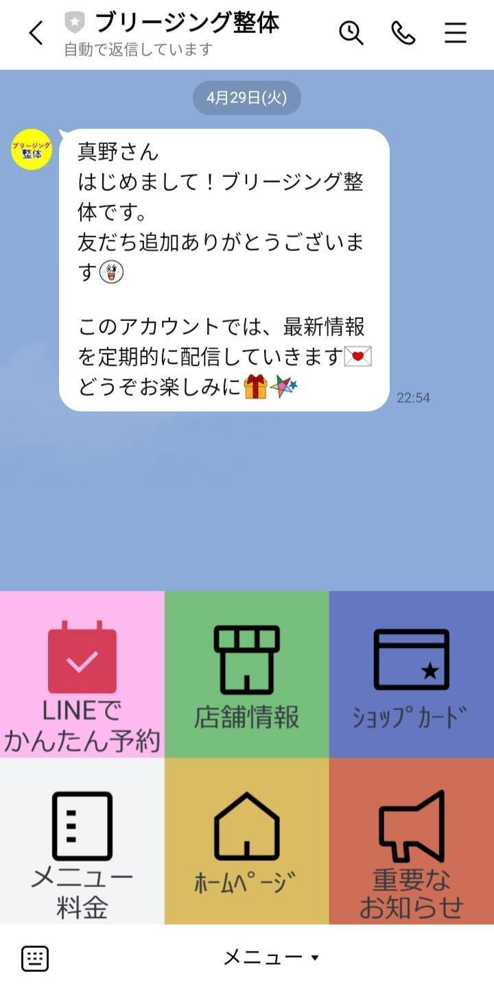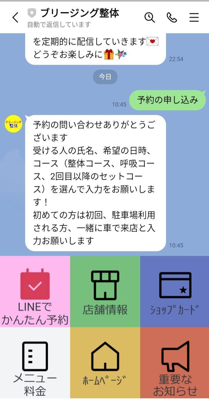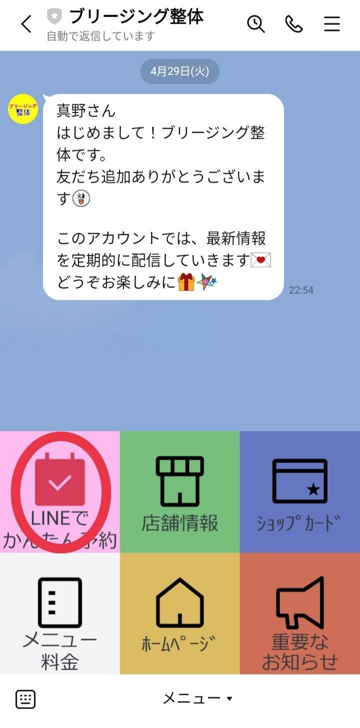 LINEでかんたん予約をタッチしたらメッセージが送られて来ます