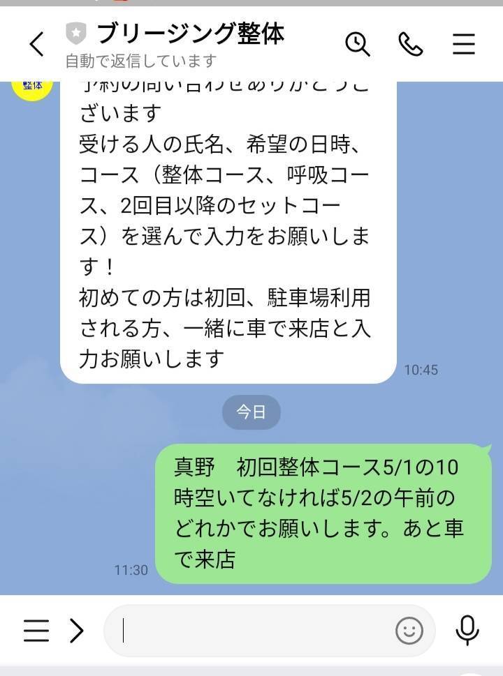 送られて来たメッセージの内容通りに予約したい日時、コースを入力して送信