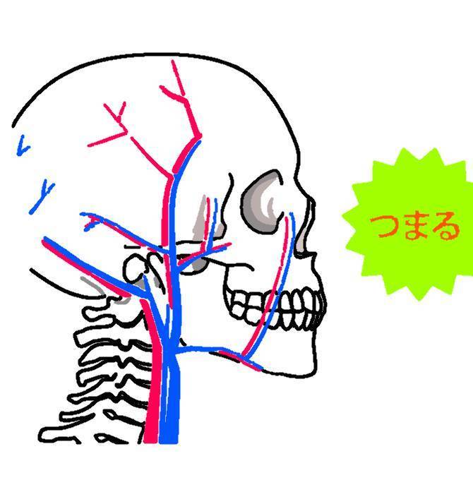 頭を通る血管は、首と頭の付け根までは太い血管、その後は細い血管へと分岐して行きます。分岐後の細い血管周辺の筋肉が硬くなり血管が圧迫されると、血液が流れにくい状態になります。すると細胞まで酸素や栄養が届きにくくなるため、それを伝えるサインとして痛みを出すのです。
