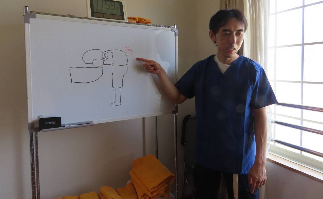 検査結果、施術後分かりやすくホワイトボードを使って説明致します。