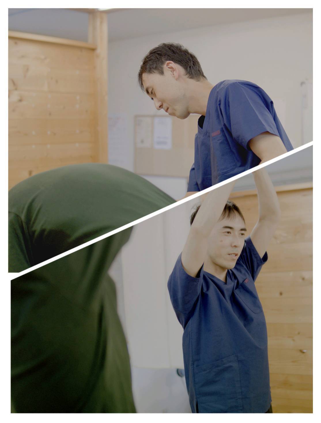 これまで沢山の施術を受けてこられたようで、またその場しのぎじゃないかと初めは疑心暗鬼のご様子でした。しかし、体の曲り、捻れを少し調整するとご覧のように体が少し立って来ました。するとご本人さんは、「あれ、体が真っ直ぐなった!体がしゃんとした!動きやすい!」と喜んでいるのと同時にビックリされていました。